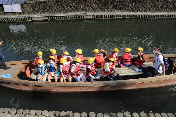 スーパーマーケット見学後は、公園でお弁当を食べました。昼休みもあり、友達と楽しく過ごしました。その後は、山車会館の見学に向かいました。11月に行われるとちぎ秋まつりの山車を見学してきました。実際に見学するとその大きさにびっくりしました。秋まつりが楽しみになりました。その後、うずま川の遊覧船に乗りました。川にはたくさんの鯉が泳いでいました。50㎝くらいある鯉が泳いでいて、その大きさにびっくりしました。特別に餌をもらって、みんなで餌やりをしました。
