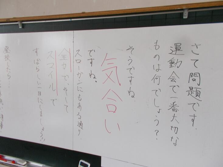 10月12日、いきいきタイムに運動会全体練習を行いました。今日は開会式・閉会式の練習でした。学年ごとにスローガン発表をしたり、優勝旗授与などの練習をしたりしました。特に高学年は姿勢もよく、緊張感も伝わってきました。学年ごとの練習もいよいよ仕上げに入ってきたようです。予報では天候にも恵まれて、運動会が実施できそうです。子どもたちが精一杯力を発揮する姿、楽しみです。