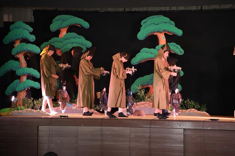 6月29日、6年生は人形浄瑠璃の体験授業に参加しました。「糸あやつり人形一糸座」のみなさんを講師に、午前中は糸操り人形の操作体験、午後は本公演を鑑賞しました。糸あやつり人形の操作体験では、一座の方々に教わりながら「歩く」という基本動作を体験しました。はじめ動きもたどたどしかったのですが、次第に慣れてくると人形の動きも「らしく」なってきました。午後の公演では、代表児童4名が村人役として登場しました。人形をあやつりながら、覚えたせりふを上手に言うことができました。貴重な体験授業となりました。「糸あやつり人形一糸座」のみなさん、いろいろとお世話になり、ありがとうございました。フォトアルバムに写真があります。ご覧ください。