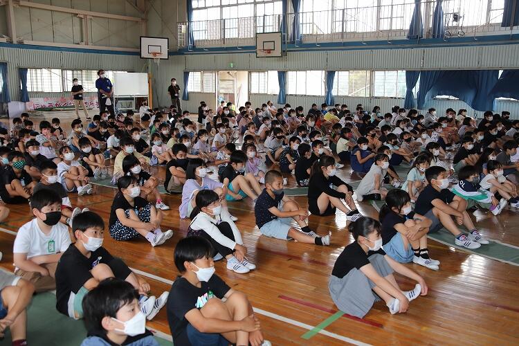 5月25日、朝会を実施しました。始めは栃木市民の歌を斉唱しました。体育館に子どもたちのきれいな声が響きました。その後は「マスクの着用について」や「できていることやもっとがんばってほしいこと」の話がありました。マスクについては、屋外で距離がとれる場合や運動を行う場合など、はずしてもよいことを確認しました。また、あいさつがよくできるようになったことや、低学年に優しく接した高学年の話、もっとがんばってほしいことなど、スライドを使って話がありました。最後は「自転車のルールと罰則」の話がありました。自転車も車と同じ仲間。なのでルールを守らないと、罰則があることを教わりました。安全第一で、自転車を利用したいですね。1学期もいよいよ折り返しです。「Guts & Challenge 笑顔あふれる東小」目指してがんばりましょう。