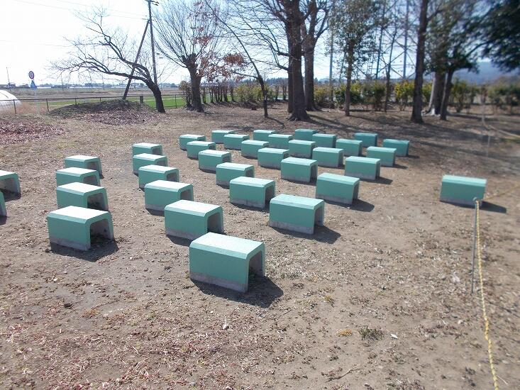 3月14日、技能員さんにお世話になり、ブランコ近くに並べたU字溝の塗装をしました。かねて音楽の授業(楽器演奏)や声出しをともなう授業で使っていましたが、今回の塗装により、更に使いやすくなりました。