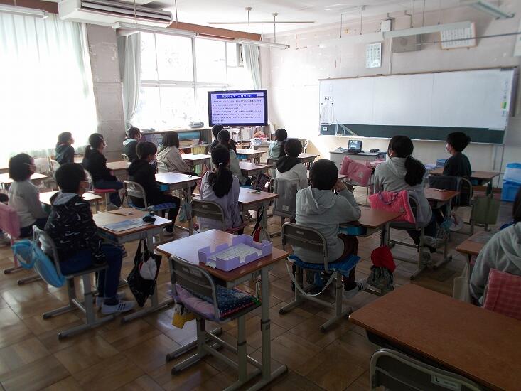 2月21日のいきいきタイムは、表彰と朝会を実施しました。作文・理科研究・運動等で活躍した児童が、校長室で表彰を受けました。表彰の様子は各教室に生配信しました。表彰後は、校長室から生配信の朝会を実施しました。この日のお話は、「身だしなみ」についてでした。校長からは様々な企業(職業)の「身だしなみ」に関する情報をスライドを使って分かりやすく説明してもらいました。子どもたちにもなじみのある職業だったので、各教室ではそれぞれ一生懸命話を聞いていました。その場にあったふさわしい「身だしなみ」について、改めて考える機会となりました。