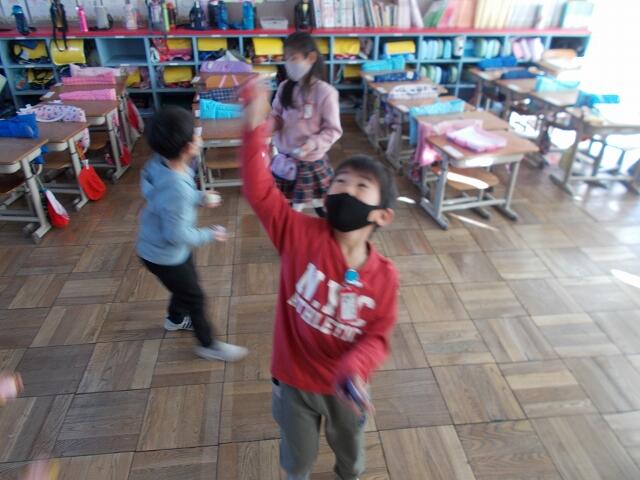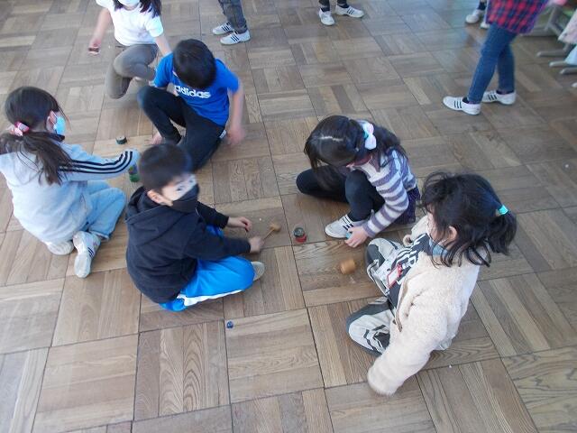 2月4日、1年生の授業をのぞいてみると、生活科の昔あそびにチャレンジしていました。あやとりやお手玉、けん玉にだるま落としなど、お友達と楽しそうに遊んでいました。「先生、見て!見て!」とできるようになったことをアピールし、とても楽しそうでした。おばあちゃんにも教えてもらったよと話す子もおり、うれしく思いました。こうした、遊びを通した交流も大切なことですね。