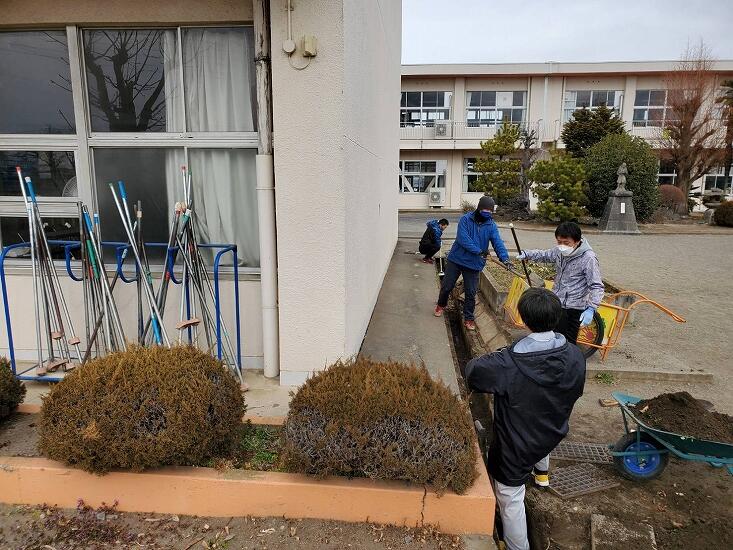 2月19日(土)おやじの会ボランティアがありました。この日は西昇降口前と、管理棟から東昇降口まで伸びる排水溝の土砂すくいをしました。OBの方や学校からの参加者を含め、9人が作業にあたりました。作業中に土砂の中から昔懐かしの「テレフォンカード」が見つかり、お宝発見!等と会話も弾みました。2時間ほど作業を行い、側溝の土砂もきれいに取り除くことができました。「おやじの会」の皆様、お忙しい中ボランティアをしていただき、大変お世話になりました。今後もご協力お願いします。