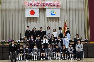 学校長式辞。校長先生から「学校はかしこくなるところ。学校はなかよくなるところ。かしこく、なかよくなるようにがんばりしょう。」というお話がありました。話を聞く態度も立派でした。