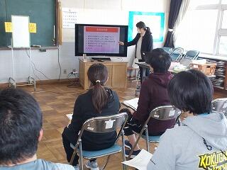 大平中学校の中田栄養教諭を講師に招いて、全職員で研修を受けました。