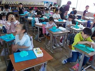 1年生学級活動の保健指導「からだのせいけつ」の授業です。