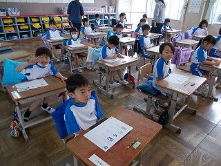 1年生の児童も普段どおりしっかりとした授業態度で、