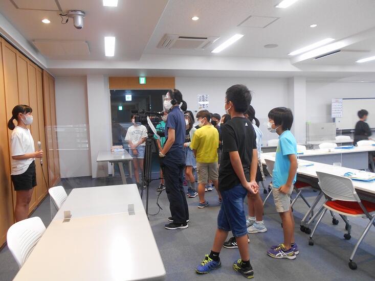 9月15日、5年生は社会科見学を実施しました。午前中はケーブルテレビの見学でした。ケーブルテレビのマスコットに出迎えられ、スタジオや編集室、社内の様子も見学させてもらいました。また、ニュースキャスターやインタビューの体験もさせていただきました。カメラを意識しながら原稿を読んだのですが、難しかったようです。情報を伝える仕事、テレビ局についてあらためて知る機会となりました。