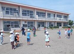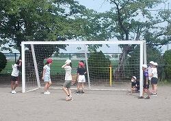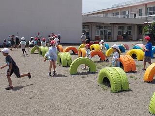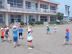 昼休みには校庭に出て児童と一緒に遊んでいます。