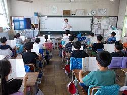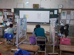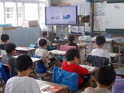 環境美化委員会の児童が代表で参加し、他の児童は教室でオンラインの映像を見ました。