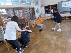 まず、学年部の役員さんが実演をまじえてルールを説明しました。