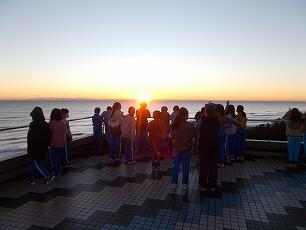 12月1日から2泊3日、5年生は臨海自然教室に行ってきました。初日は7時30分に学校を出発、9時30分にはとちぎ海浜自然の家に到着しました。入所式とオリエンテーションを済ませると、早速第一の活動「館内探検」に出発です。班ごとに館内に設置されたマークをさがしながら、広々とした自然の家を探検して回りました。その後はプール活動でした。これまた広々とした温水プールで、水泳練習や自由時間を過ごし、ちょっとしたバカンス感も味わいました。夕方には創作活動「貝の根付け作り」に取り組みました。1対の貝殻に布を貼り付けて、かわいらしい根付けを作りました。就寝前には班長会議を実施し、その後各部屋で1日目の振り返りをしました。2日目。まずは干物作りに挑戦しました。さんまを2枚におろし内臓を取って水洗いしました。初めての作業でしたが、生の魚を加工する貴重な体験でした。作業が終わると、みんなそろってアスレチック広場で外遊びを楽しみました。大きな船の遊具にみんな夢中でした。午後はつぼ焼き芋、塩作りです。海でくんできた塩を土鍋で煮立たせました。薪の煙に苦戦しましたが、最後には天然の塩ができあがりました。できた塩の味見をした子供たちは、思わず「うめー。」と声を上げていました。同時に作った焼き芋も食べました。ほくほくの甘い焼き芋でした。夜はナイトハイキングにも行きました。満天の星空と、波の音が心に残りました。3日目は、ニュースポーツ、「グランドゴルフ」と「ペタンク」に挑戦しました。打数を競いながらグランドゴルフを楽しみました。ペタンクは実際にやってみると意外に難しいスポーツでした。力加減と、チームの協力が必要なスポーツでした。初めての2泊3日の宿泊学習で、心配なこともありました。しかし、友達や先生と過ごした3日間は、事前学習の成果が現れた充実した楽しい3日間となりました。友達とのきずながまた深まった3日間でした。最後になりましたが、保護者の皆様には準備や健康管理など、大変お世話になりました。ありがとうございました。この経験を生かし、これからの学校生活をよりよいものにしていきたいと思います。フォトアルバムに写真があります。ご覧ください。