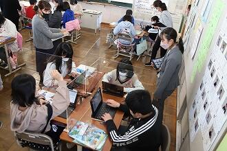 11月24日、6年生のクラスで学校課題である国語科の、授業研究会を実施しました。今年の研究主題は、「主体的に学び、いきいきと表現する児童の育成~国語科の授業改善を通して~」です。この日6年2組の子供たちは、個人で考えた1年生と楽しむ遊びを根拠を元に発言し合い、意見をまとめる話合いをしました。グループごとに積極的に話し合う姿を見ることができました。子供たちは話合いの視点、「疑問点」「共通点」「改善点」を意識しながら、意見を交換していました。話合いのツールとして一人一台端末(タブレット)を使用しました。タブレットに熱心に書き込みをする子供も見られ、表現のツールとしてタブレットを有効に使うこともできました。授業後には、教育委員会からお招きした講師と共に研究会を実施しました。先生方にとっても様々な学びを確認することができました。今回の授業ばかりでなく、これまでに一人一授業ということで、先生方の授業公開がありました。よりよい授業作りのために、今後も研究に尽力したいと思います。