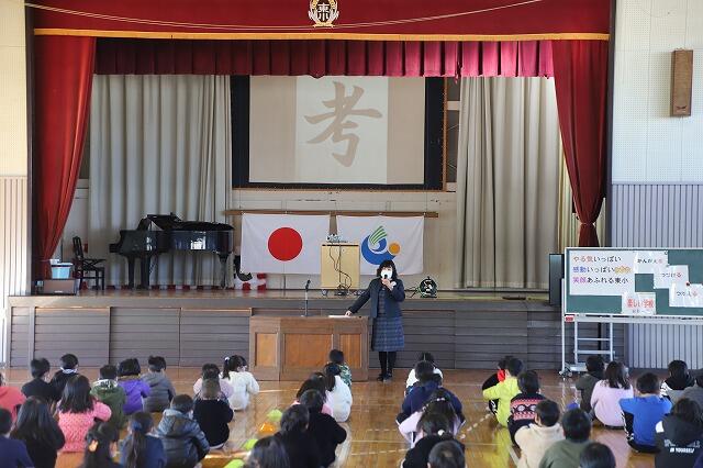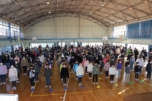 新型コロナウイルス感染症対策のため体育館の窓を開放してあるので大変寒い中でしたが,新年を迎えたばかりの子供たちの表情はとても生き生きしていて,希望に満ちた“熱意”が感じられました。