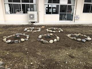 校内の花壇や中庭には、緑の募金を活用してハボタンやプリムラジュリアンが植えられています。