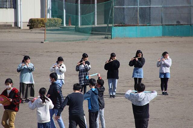 今年度は,感染症対策を取って会場を校庭としたので,全校児童参加で実施することができました。6年生の堂々とした立派な演奏や踊り,5年生の緊張しながらも一生懸命に取り組む姿を全校で温かく見守ることで,下級生の心の中にも「自分たちも…」という気持ちが芽生え,このおはやしが本校の『伝統』としてずっと続いているのではないかと,改めて感じました。