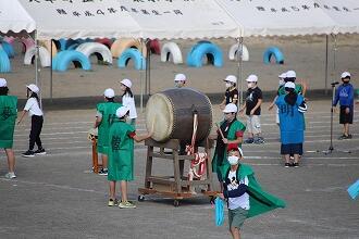 10月15日、全校生でのおはやしタイムを実施しました。6年生のおはやし演奏に合わせて、全校生で東小音頭を踊りました。大太鼓や金、鼓や横笛に合わせて、みんなでおどりました。本来なら運動会で行うはずですが、感染症対策のため、学校内のみで実施しました。6年生の演奏はとても上手でした。この日はPTA会長にお世話になり、おはやしタイムの様子をライブ配信しました。東小の伝統として、これからも大切にしたい行事です。