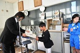 大平中の2年生が朝のあいさつ運動を行い