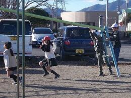 子供たちは校庭で元気いっぱい遊びました。