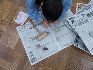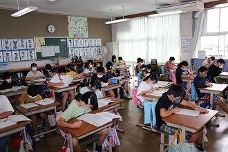 10月1日、クラブ活動を実施しました。延期になっていたクラブ活動だったので、4~6年生の子どもたちは、それぞれ楽しそうに活動していました。体育館では、ボールクラブとバトミントンクラブが活動していました。この日は雨が降っていて少し肌寒い日でしたが、子どもたちは汗をかきながら運動していました。多目的室では、チャレンジクラブの子どもたちが化石見つけをしていました。化石が含まれる岩石を割り、その層にできている化石を見つけていました。家庭科クラブはハロウィンランタンの製作、サイエンスクラブは偏光フィルムを使ったマジックボックスの製作をしていました。またパソコンクラブはタイピングゲームやプログラミングゲームを使って、思い思いの活動をしていました。イラストクラブは、模造紙を使ってグループでのイラスト制作に取り組んでいました。異学年と交流しながら、クラブ活動を楽しんでいました。