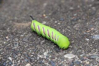 ◇このイモムシは,スズメガ科の一種「コエビガラスズメ」の幼虫です。成虫は地味な色をしていますが,幼虫はとてもきれいですね。