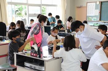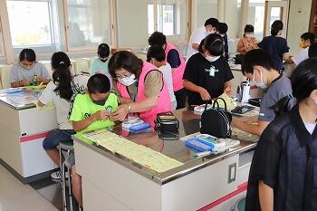 6月17日、5年生は家庭科で手縫いにチャレンジしました。初めての手縫いということで、この日はボランティアさんに学習支援をお願いしました。まずは、玉結びの練習からでした。動画でやり方を確認して、早速やってみました。その後は玉どめの練習です。この2つをきちんと練習しておかないと、手縫いがうまくできませんよね。ボランティアの方にも支援していただきながら、練習は続きました。ボランティアのみなさん、これからも学習支援をお願いします。