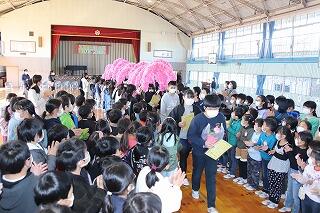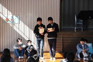 卒業を迎える6年生に感謝の気持ちを伝えるために,6年生を送る会が行われました。各学年の持ち時間が5分間程度と短い時間ではありましたが,それぞれの発達段階に応じて歌や言葉・踊りなどを交え,心を込めてお祝いすることができました。