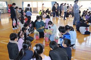 ◇なかよし班で作ったお礼の手紙と花のプレゼントを贈りました。はにかみながら手渡す下級生の姿と,もらった手紙をしんみりとそして笑顔で呼んでいる6年生の姿が印象的で心温まりました。