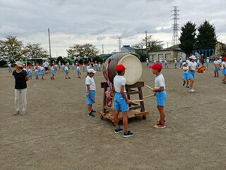 今日の練習は,東小音頭です。おはやしの音色と歌声がが,元気よく校庭に響き渡っていました。