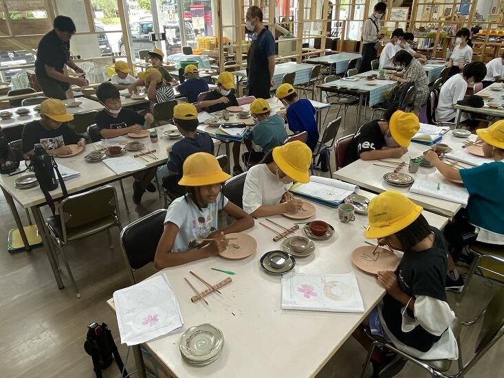 9月22日、4年生は校外学習に行ってきました。午前中は益子での絵付け体験です。素焼きのお皿に、あらかじめ決めておいたデザインを筆を使ってかいていきました。3色の色が付けられるので、いろいろと考えながら下絵をかいていました。昼食をすませた後は、県庁に向かいました。展望室、危機管理室、議場などを説明を聞きながら回りました。2000人の人が、県民の豊かな暮らしのためにここで働いているそうです。最後になりましたが、保護者のみなさんには子どもたちの健康管理やお迎え等、大変お世話になりました。この体験をこれからの学習にいかしていきます。フォトアルバムに写真があります。ご覧ください。