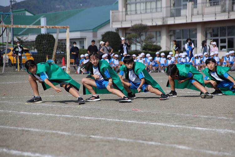 10月14日、運動会を実施しました。今年度の運動会は、保護者等の入場制限をなくした形で実施しました。祖父母の方や、中学生の卒業生なども参観に来ていたようです。たくさんの方に見ていただき、子どもたちもうれしかったことでしょう。今年の運動会のスローガンは『ガッツ&チャレンジ みんなでかがやき勝利をめざせ!』でした。各学年の子どもたちは、児童会で決定したこのスローガンのもと、精一杯競技や演技をしていたと思います。閉会式の校長講話でも『みなさんに100点を上げたいと思います。』の言葉もありました。また一つ、心に残る思い出ができました。最後になりましたが、PTAの役員のみなさまには、朝早くから見回りや広報活動などに自主的に取り組んでいただき、ありがとうございました。また、お忙しいところ参観していただいた保護者のみなさん、ありがとうございました。さらには、副市長様、学校運営協議会委員様のご臨席もいただき、重ねてお礼申し上げます。今後も本校教育活動へのご協力、よろしくお願いします。