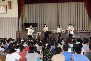 6月15日の『栃木県民の日』にちなんで,栃木市文化会館のアウトリーチ事業で音楽鑑賞会が行われました。金管四重奏『Bamboo Brass Quartetto(バンブー ブラス カルテット)』による,1時間ほどの楽しい演奏会となりました。
