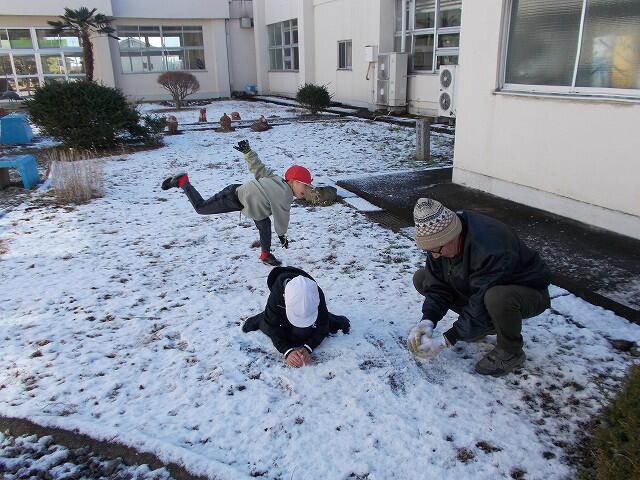 1月15日、1年生は生活科の授業で「雪遊び」を楽しみました。前日に降った雪が中庭に残っていたので、みんなで「冬」を楽しむことができました。雪だるまを作ったり、池に張った氷を持ち出したりと、思い思いの遊びを楽しみました。先生たちも一緒になって遊びました。子どもたちは寒さもへっちゃらの様子でした