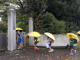 今日は雨天のなか、かさをさして、どの登校