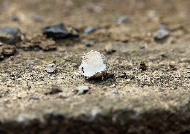 ◇ヒバリの卵の殻でしょうか?おそらく,カラスに食べられたあとだと思われます。(東山北側)