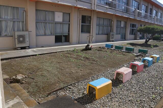 夏日が予想さるので,早朝から,特別支援学級の山口先生が,耕運機で中庭の畑を耕していました。おうちでも農作業をしているので,お手の物です!