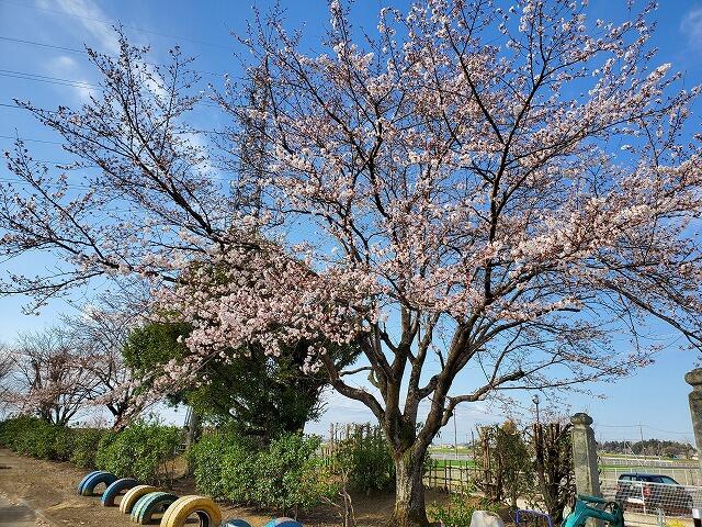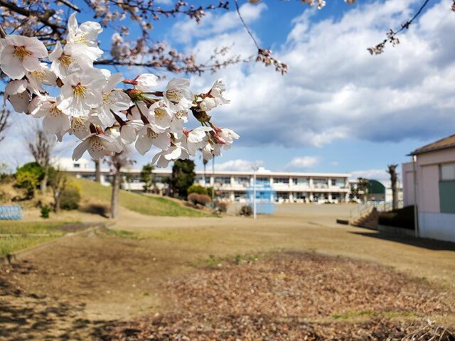 ◇校庭南側のサクラ。五分咲きでしょうか。