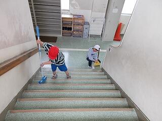 1年生から6年生のなかよし班で担当場所を清掃します。