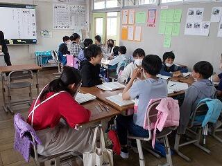 活動の予定について先生のお話を聞いて、質問をしていました。