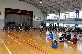 いきいきタイムの発表集会では,縄跳びが得意な6年生による技の披露が行われました。下級生の拍手と歓声を浴びながら,目指すべきいい目標を示してくれました。