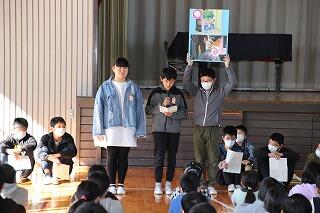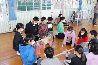 ◇なかよし班で作ったお礼の手紙と花のプレゼントを贈りました。はにかみながら手渡す下級生の姿と,もらった手紙をしんみりとそして笑顔で呼んでいる6年生の姿が印象的で心温まりました。