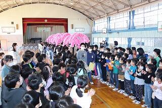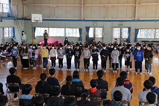 卒業を迎える6年生に感謝の気持ちを伝えるために,6年生を送る会が行われました。各学年の持ち時間が5分間程度と短い時間ではありましたが,それぞれの発達段階に応じて歌や言葉・踊りなどを交え,心を込めてお祝いすることができました。