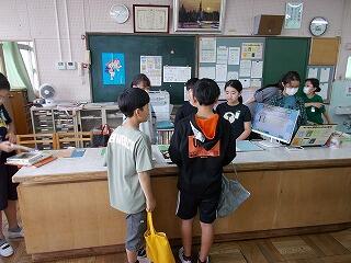 活動の予定について先生のお話を聞いて、質問をしていました。