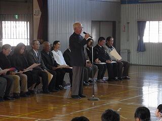 給食の後は、見守り隊の方や大平交番所長さん・スクールサポーターさんを体育館に招待して見守り感謝の会を行いました。