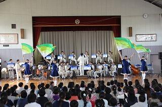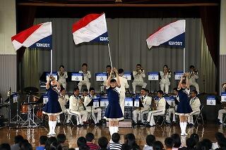 ◇校長先生のお話の後,吹奏楽の定番『ブルー・スカイ』で演奏会が始まり,カラーガードのお姉さんたちの演技で,子供たちのハートがわしづかみにされました!