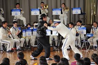 ◇『山の音楽家』では,楽器紹介をしたくださいました。そして,『海の声』の後は,寸劇『名探偵コナン(シマダ)』を使って,子供たちに防犯の約束「いか・の・お・す・し」を指導してくださいました。「本当に,おまわりさん?」と思うほどの芸人顔負けの爆笑を誘いつつも,子供たちの防犯意識をしっかりと高めてくださいました。