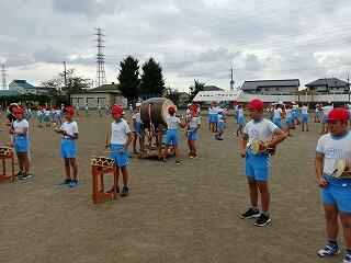 今日の練習は,東小音頭です。おはやしの音色と歌声がが,元気よく校庭に響き渡っていました。