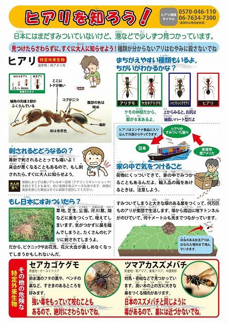 環境省から,「ヒアリ等の外来生物に関する正しい情報を提供し,安全かつ適切な対応がとれることを目的に」小学生向けの啓発チラシの情報が届きました。