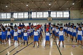 雨が強くなってきたので、閉会式は体育館で